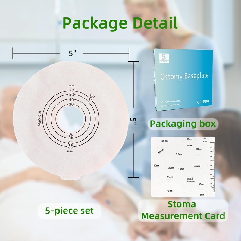 - Package Includes: 5pcs ostomy skin barrier(ostomy bags are not included), a stoma measurement card