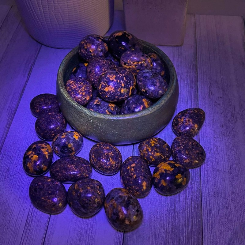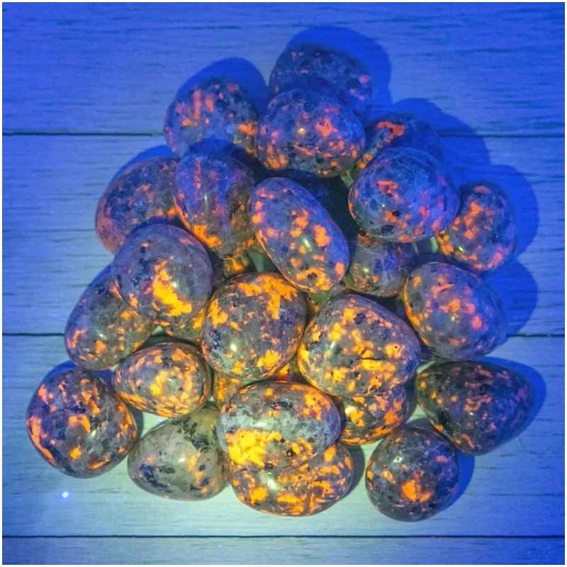 5Pcs Raw Emberlite Tumbled Pocket Stone UV Glowing Flame Sodalite Home Decor
