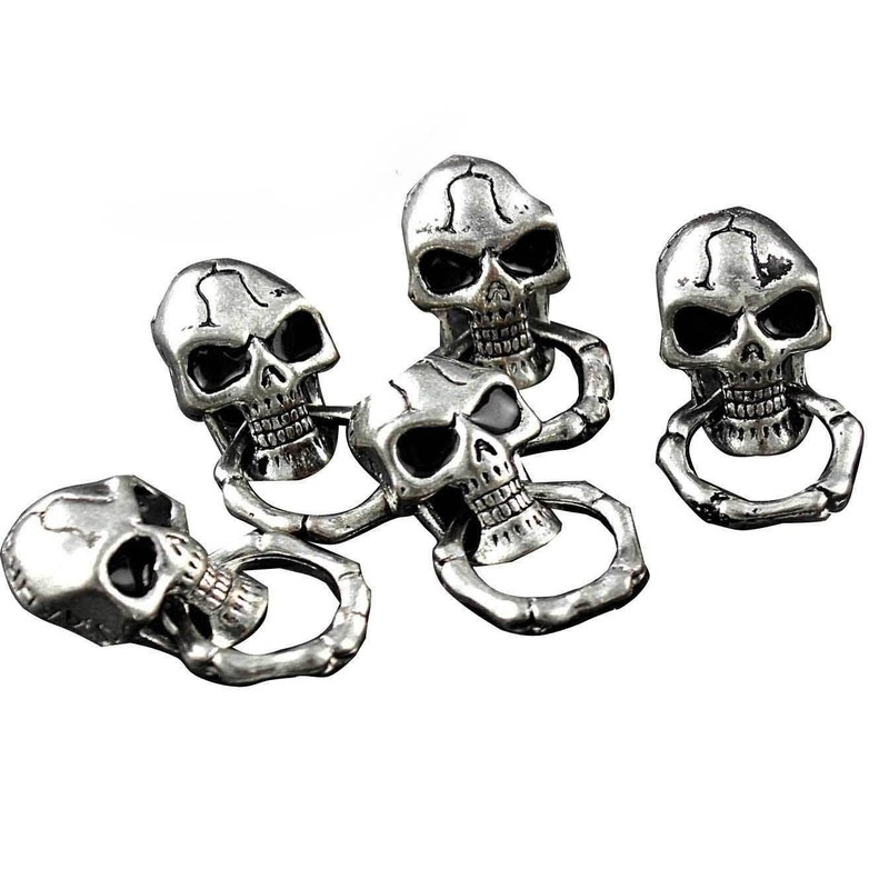 5PCS Screw Back Sliver Tone Skull With Ring Biker Chain Wallet Connector Joint (5PCS Connector)