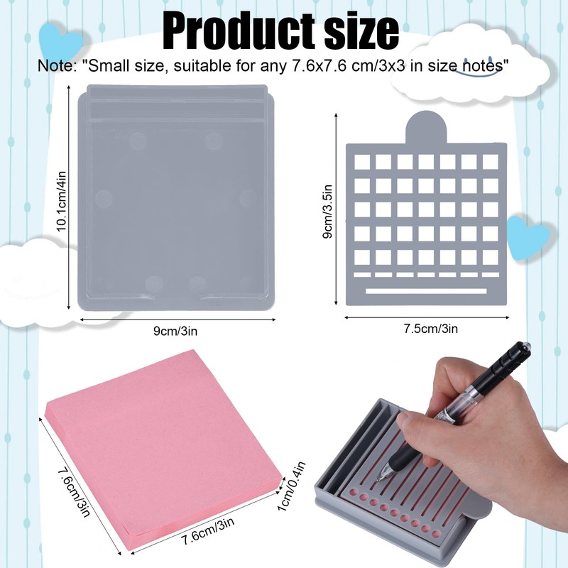 • Product Size: The note template is at the size of 9x7.5x0.2cm/3.5x3x0.08in and the note paper is 7.6x7.6x1cm/3x3x0.4in. You can check the detail picture to know more.