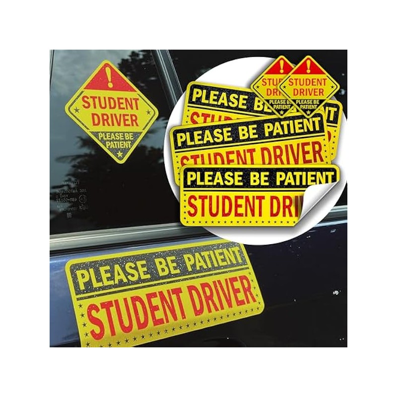 5pcs Student Driver Sticker (Non-Magnet) – Reusable, Reflective 'Please Be Patient' Signs for Car Bumper, Paint & Windows, Scratch-Free, Weather-Resistant