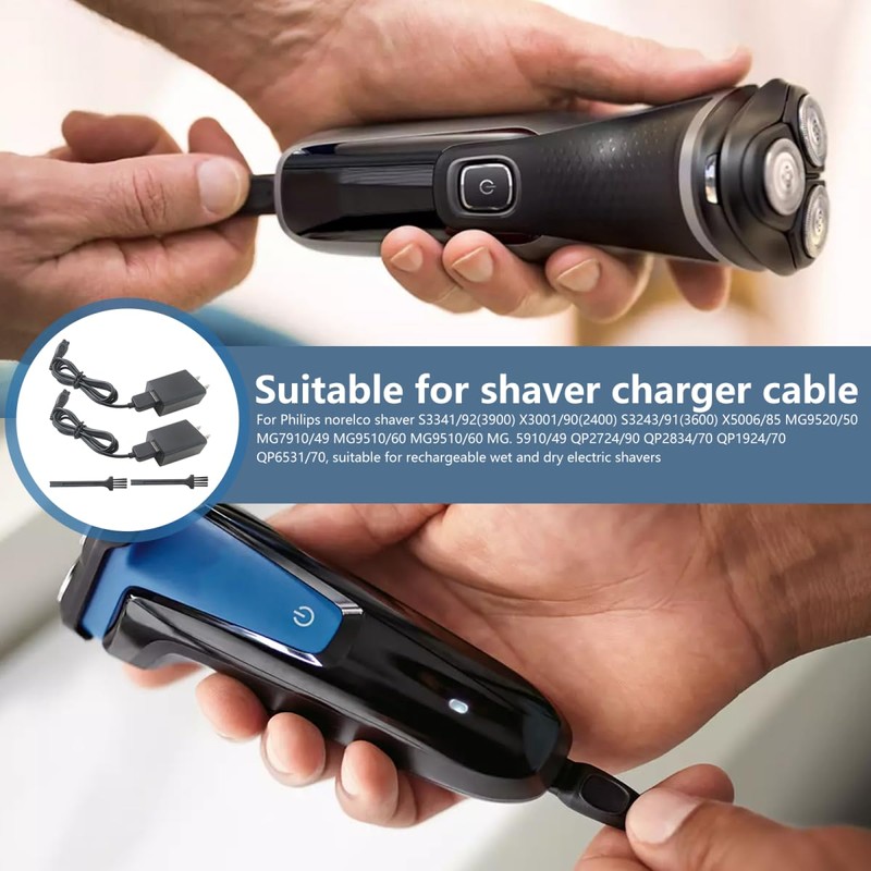 - for Philips Norelco Shaver Charger Cable: Fit for Philips norelco shaver S3341/92(3900) X3001/90(2400) S3243/91(3600) X5006/85 MG9520/50 MG7910/49 MG9510/60 MG5910/49 QP2724/90 QP2834/70 QP1924/70 QP6531/70, for philips rechargeable wet & dry electric shaver (Not Applicable to Old Versions)