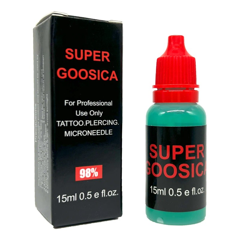 Super Goosica® 98% es un gel anestésico de la más alta calidad y máxima potencia, para eliminar el dolor asociado con tatuajes, microblading, tratamientos de radiofrecuencia fraccionada, Dr. Pen, Dermapen, BBGlow y más.