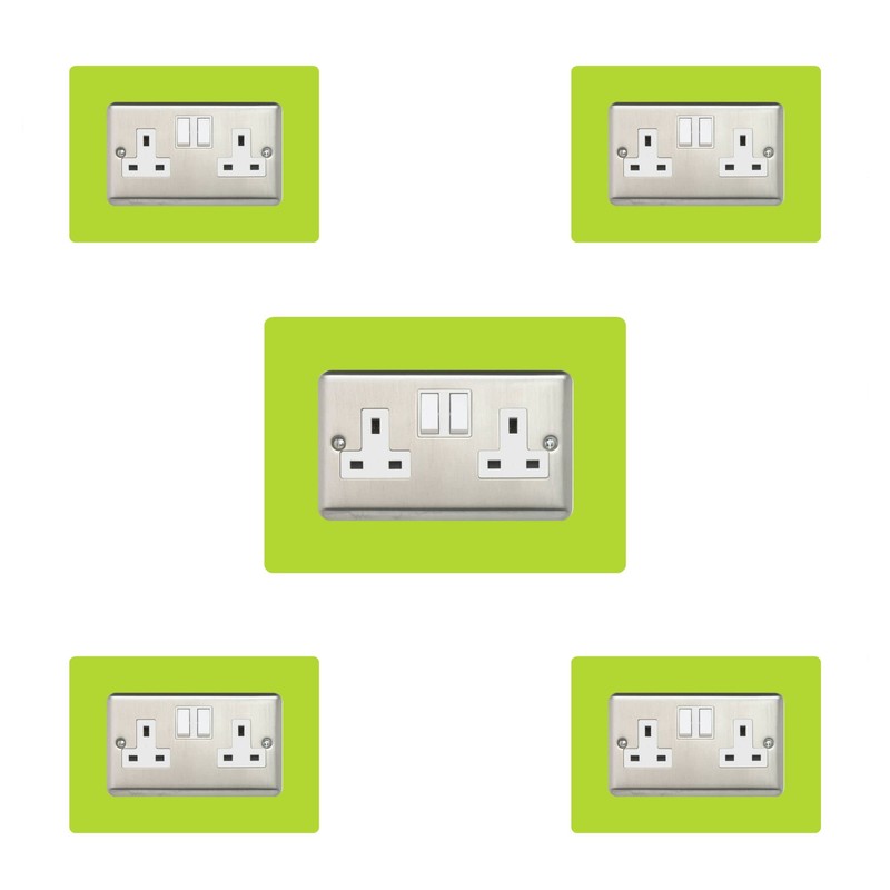 5X Double Socket Surround, Acrylic Back Panel or Plate, Protect Wall from Finger Prints, Font Colour:Lime Green