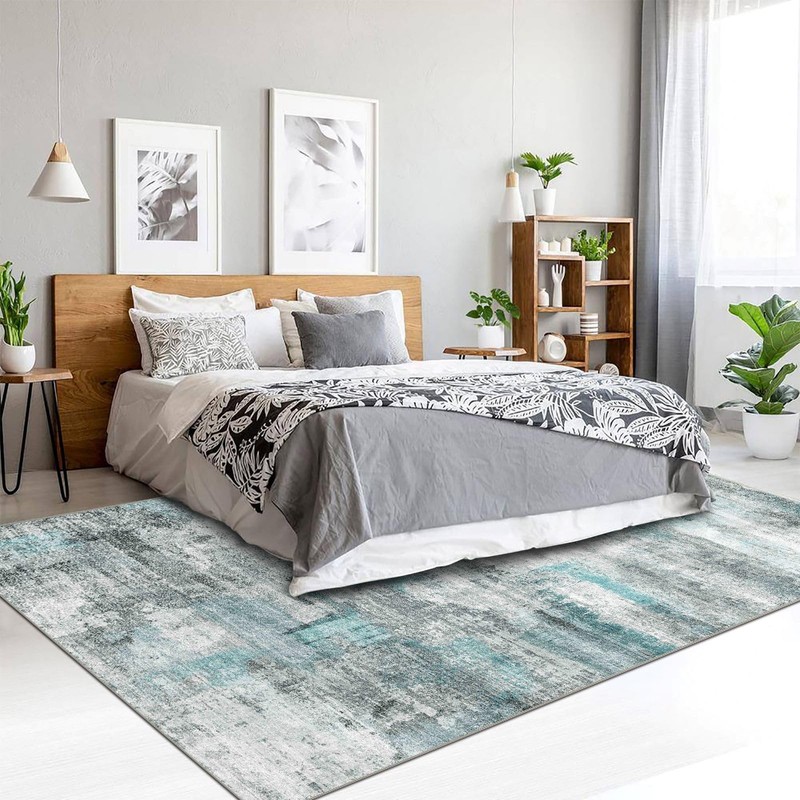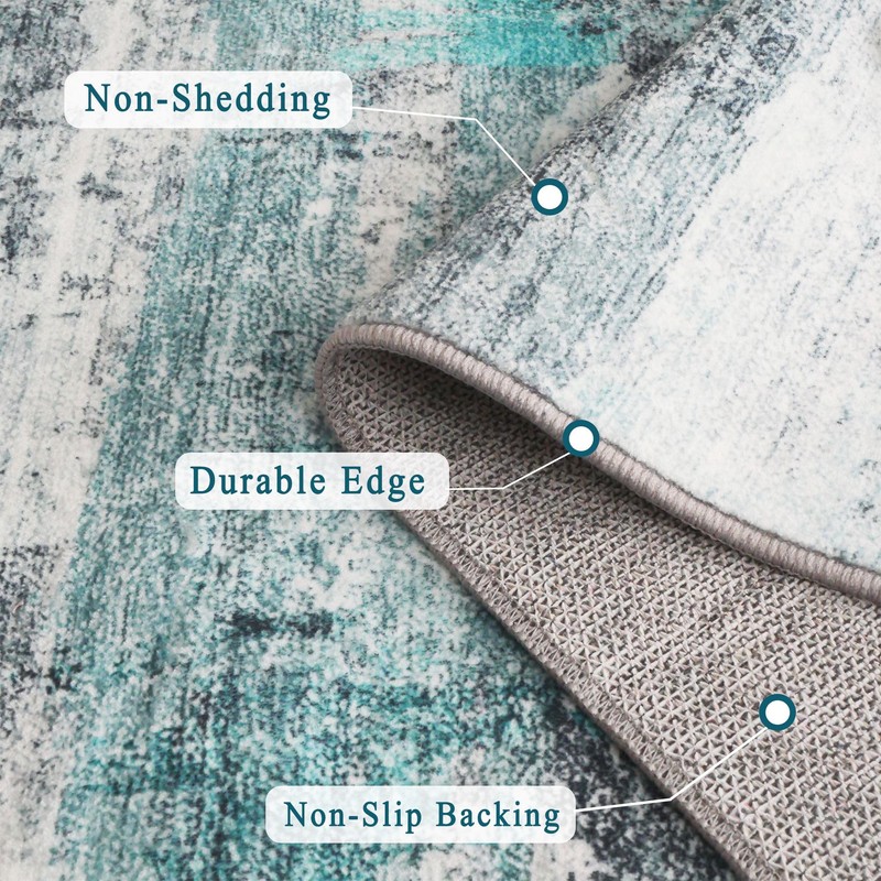 5x7 Area Rugs - Ultra-Thin Washable Rug with Non-Slip Backing, Ideal for Living Room, Bedroom, Kitchen Floor Carpet - Modern Abstract Style, Easy Clean, Durable, Low Pile Teal