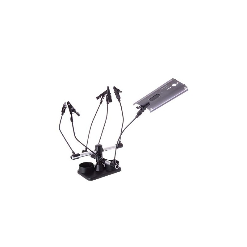 - Also comes with metal base plate. Plastic crocodile clips will not damage your workpieces
