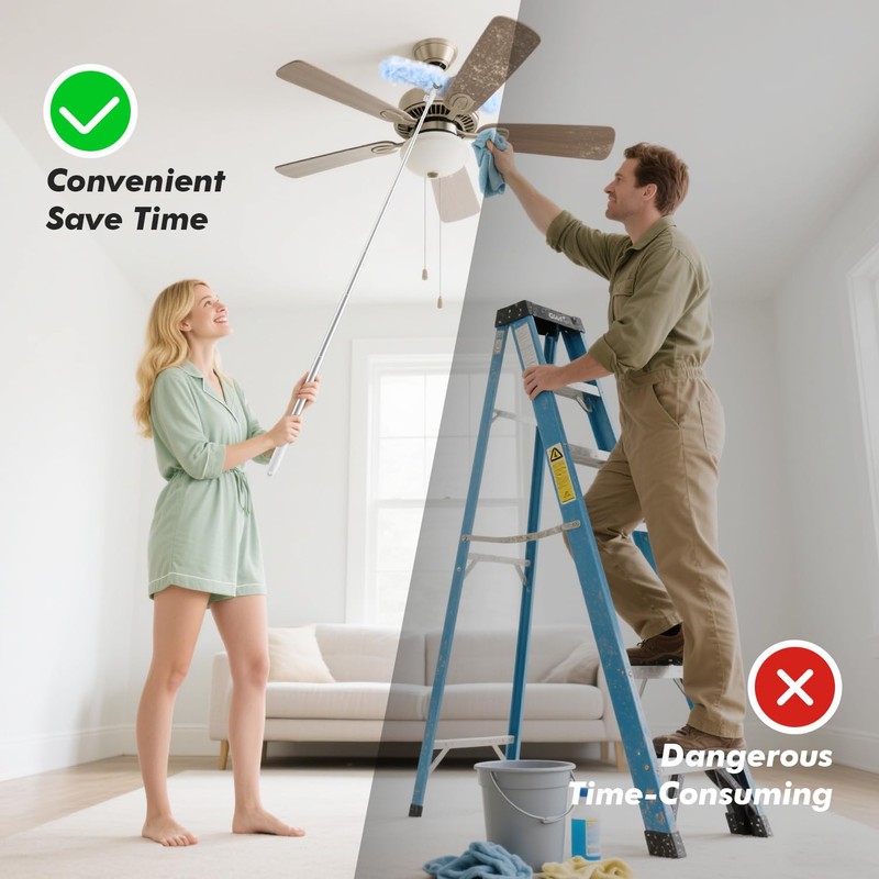 - 360-degree all-around cleaning double-head swiffer duster refills .Say goodbye to the hassle of cleaning high places with AIR U+ extendable duster. Easily reach ceilings, ceiling fans, air vents, and other hard-to-reach areas. No extra tools are needed—just pull out the duster, and it extends to 6 feet, making high cleaning a breeze