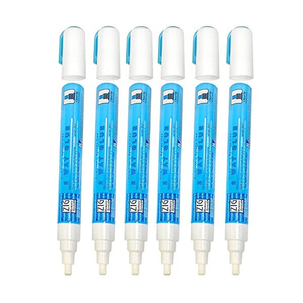 6 Glue Pens, Zig Memory System Archival Quality for Photo Books, Scrapbooking, Embossing, Wedding Fans (Medium Chisel Tip)