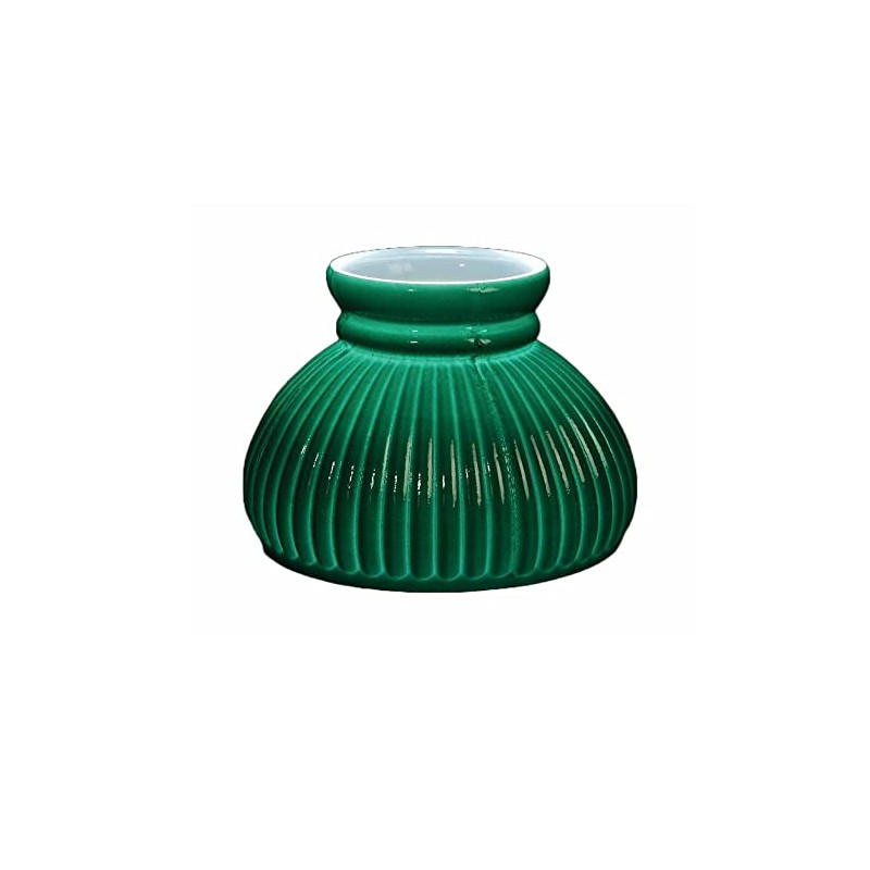 - Hand blown American-made opal glass rib shade with sprayed dark green
