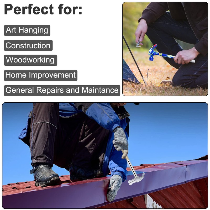 - Design Feature: It is a metal hammer made of heat-treated high quality carbon steel. The narrow and flat side of the hammer head is specially processed and has high hardness. The design of the knurled handle allows you to have a better grip and is oil-resistant and non-slip.