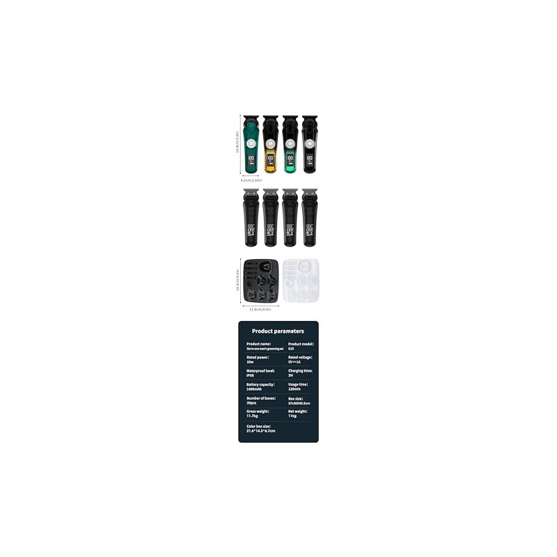 Transform your grooming routine with our comprehensive 6-in-1 Men's Multifunctional Professional Electric Grooming Kit. Tailored for the modern man who values efficiency and quality, this set combines an electric hair clipper, precision trimmer, nose hair clipper, and shaver into one sleek package, designed to handle all your grooming needs at home or on the go.