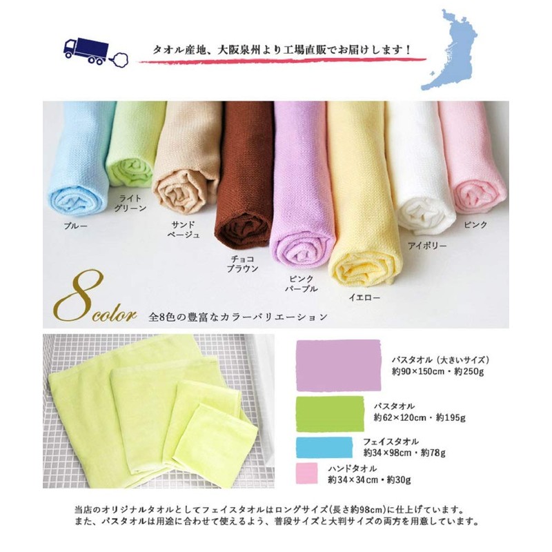 • Made of thin and soft thread, it is flexible and gentle on the skin. These towels are made in Japan from Senshu in Osaka