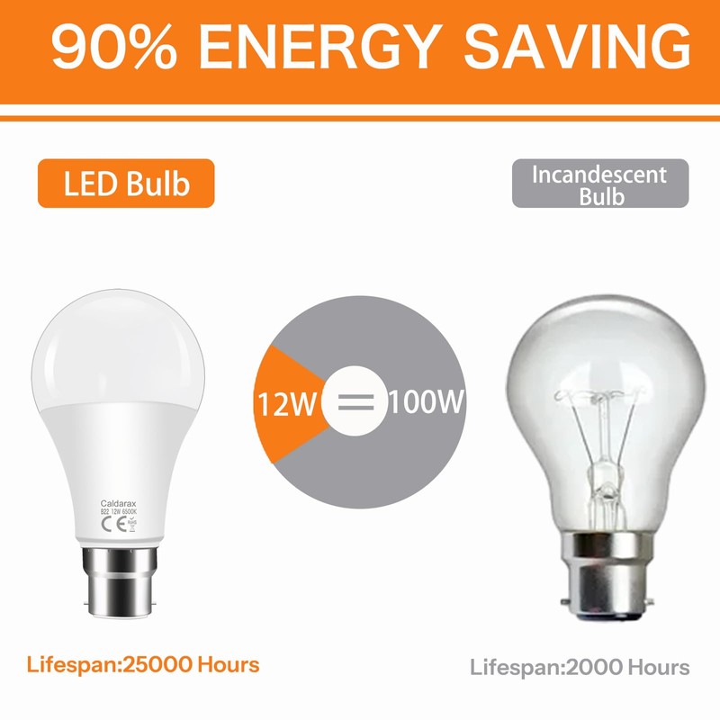 6 Pack 12W B22 LED Bulb, 12W Equivalent to 60W 100W Halogen Bulb, Warm White 2700K, 1200LM, AC175-265V, Non-Dimmable, A60 Big Screw E27 Base, Energy Saving Bulb E27
