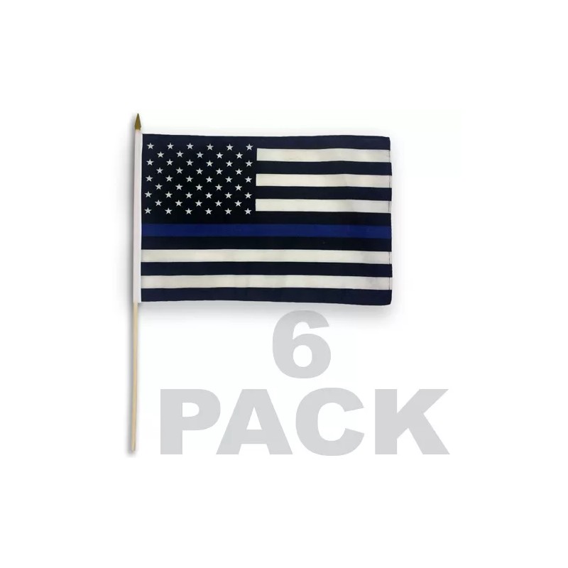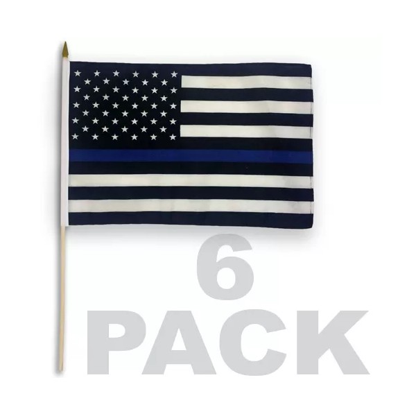6 PACK 12x18 THIN BLUE LINE USA Stick Flag Police Blue Lives Matter Flags