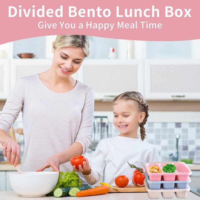 6 Pack Bento Lunch Box Snack Containers BPA-Free Reusable Bento Box Kids Adult, 5 Compartment Meal Prep Container with Lids for School, Company, and Travel