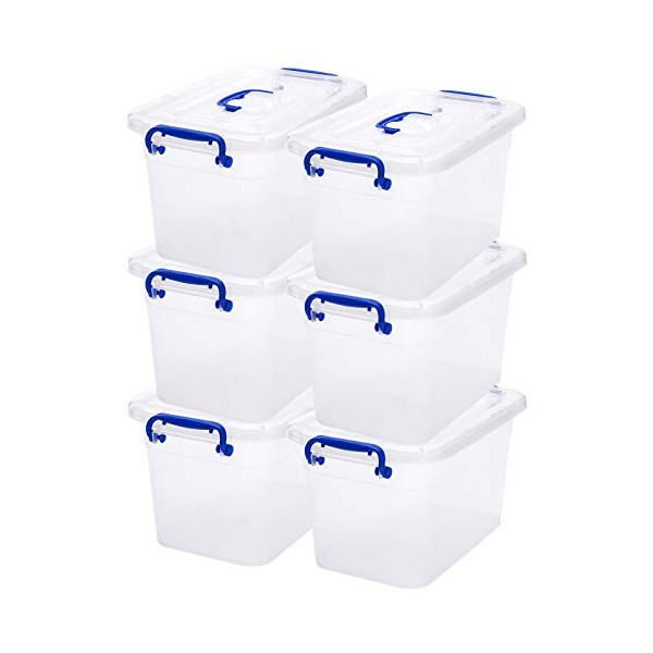 6-Pack Clear Storage Box 7 Quart, Plastic Storage Latch Bins with Handle 6.5 Liter