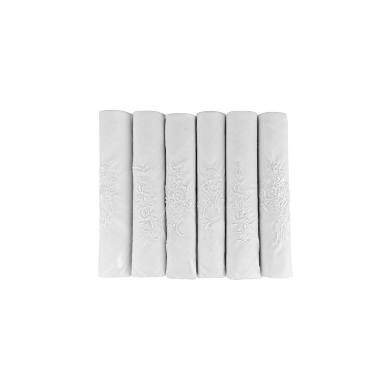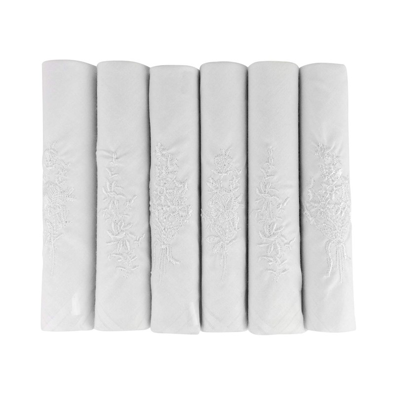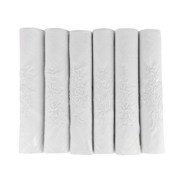 6 Pack Ladies Boxed 100% Cotton Embroidered Luxury White Handkerchiefs, 40 x 40cm approx, White