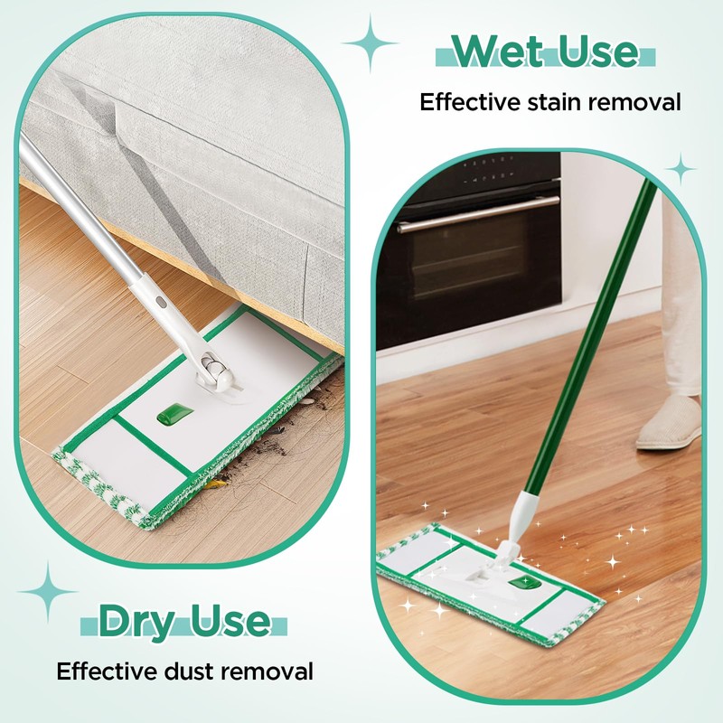 - Streak-Free Cleaning: The advanced microfiber material absorbs water stains effortlessly, leaving your floors clean and streak-free, whether you're dry dusting or wet mopping.