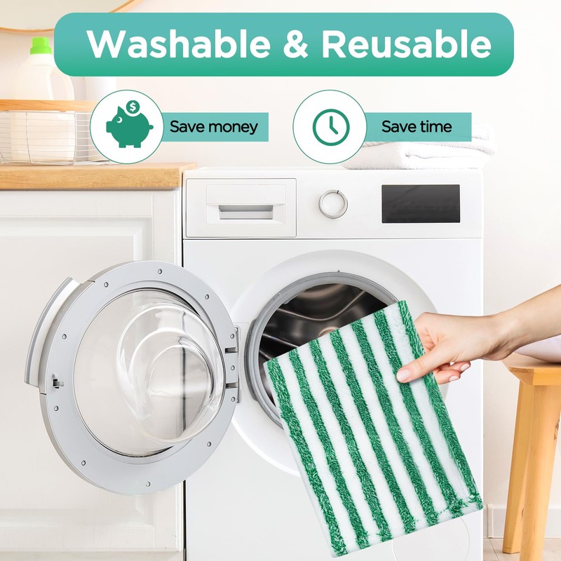 - Reusable and Machine Washable: Enjoy the convenience of our microfiber cloth mop that can be machine washed up to 100 times without shrinkage. Save money and reduce waste while keeping your floors spotless.