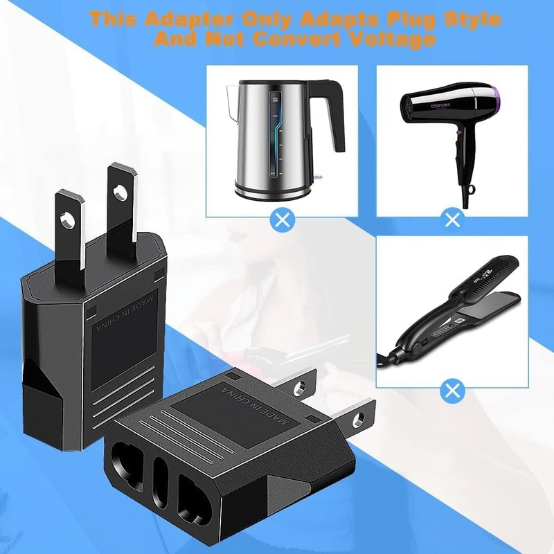 - [MULTI-PURPOSE]: These plug converter Europe to USA are very small electrical adapter plugs, perfect for charging Smart phones, Bluetooth speakers, cameras, tablets, shavers, headphones, laptops and so on. (Note: This is not a voltage converter; These plug adapter Europe to us is only compatible for 110V to 250V wide voltage device)