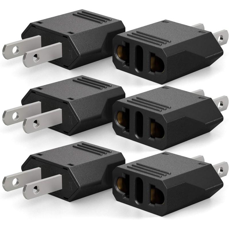 6 Pack of European to US Plug Adapter, Plug Converter, Travel Adapter European to American, Canada, Mexico, Type A (Black)