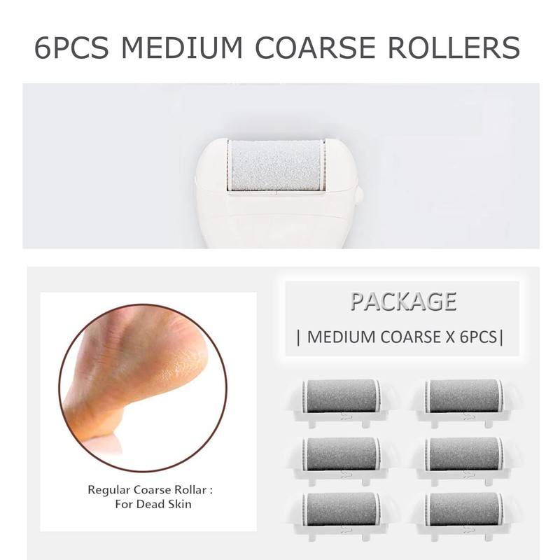 - 【6pcs Medium Coarse Replacement Refill Roller】 The medium rough replacement coarse rollers for softening & smoothing regular hard skin.