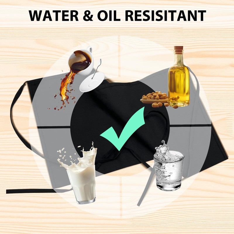 • [MULTI-PURPOSE UTILITY]: Beyond kitchen applications, this black server apron serves as perfect protective gear for painting, woodworking, gardening, bartending, and DIY projects. The waterproof & oil-resistant fabric makes it ideal for messy tasks across multiple settings.