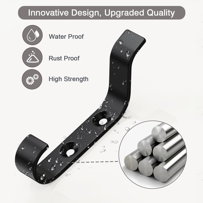 - 🌠Heavy-Duty Style That Lasts - Our matte black towel hooks are constructed from the highest grade stainless steel for maximum durability. Boasting premium waterproof and rustproof quality with a weight capacity of up to 66lbs/30Kg. Provides a secure storage solution built to withstand busy bathrooms, kitchens, entryways and beyond.