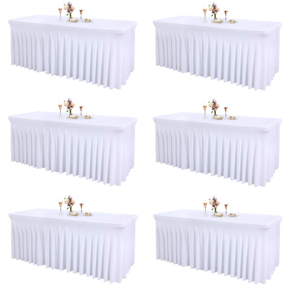 6 Packs White Spandex Table Clothes for 8 Foot Rectangle Table, Spandex Table Covers 8FT Stretch Table Skirts Rectangle Tables Wrinkle Free Fitted Table Cover for Event, Wedding, Banquet & Parties
