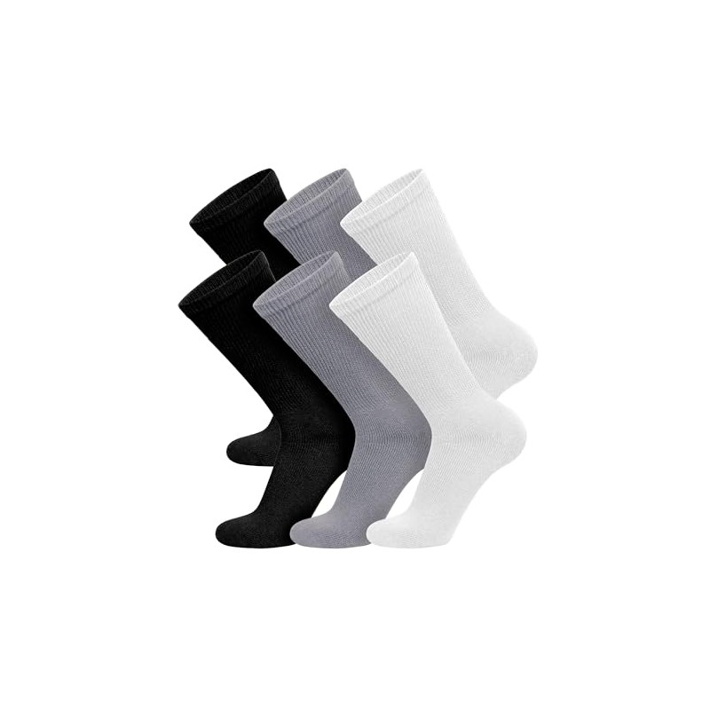 6 Pairs of Cotton Diabetic Non-Binding Neuropathy Crew Socks (Black, Gray, White, Fits Mens Shoe Size 8-10/Womens shoe size 9-11)