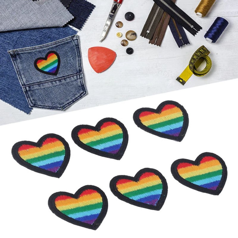 6 Parches de Corazón Arcoíris, Apliques de Corazón, Parches para Planchar para Costura DIY, Bordado, Decoración de Mochila, Artesanías(Negro)