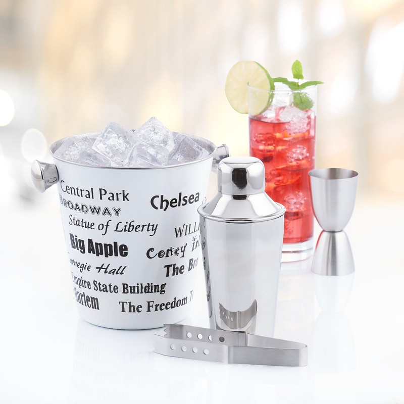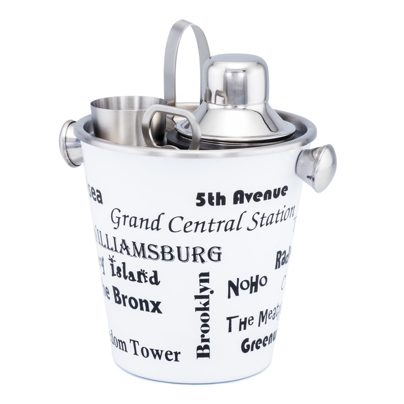 • Ice Bucket designed with the names of well known areas and landmarks of New York
