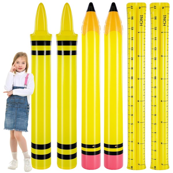 - Rich Selection: includes 6 inflatable pencil in 3 styles, pencil, crayon and ruler, 2 of each style, bringing endless fun to your pool time; With their bright colors and large size, these blow up pencil stand out effortlessly in the water, transform your pool into a lively, eye-catching; Wonderful for graduation pool parties or any festive gathering, these floats ensure your celebration stands out with their vivid hues and playful aesthetics