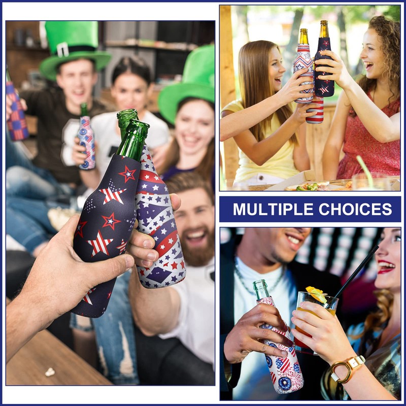 - Use Scenarios: featuring elasticity, these sleeves for bottles are easy to hold your most drink bottle of about 12 oz, suitable for beer bottles, wine bottles or beverage bottles with long necks, making your work, life, study or travel more convenient, creating a strong atmosphere for Independence Day