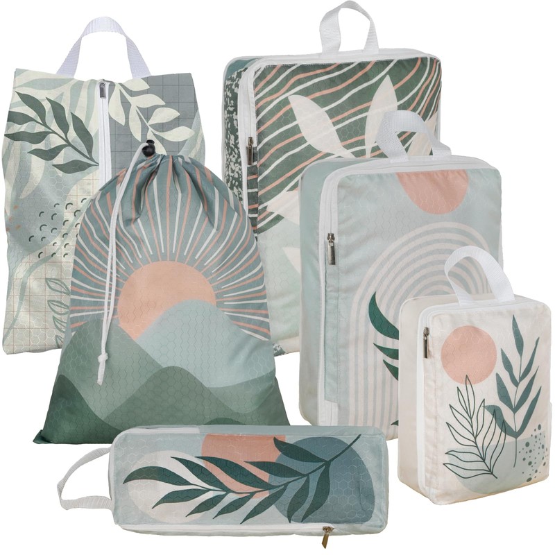 6 Pcs Compression Packing Cubes Waterproof Suitcase Travel Bag Luggage Backpack Organizer Travel Cubes for Packing-Bohemian