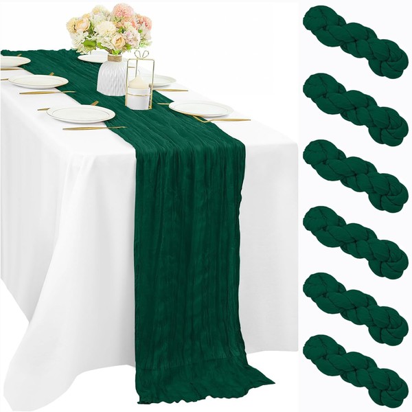 6 Pcs Emerald Green 10FT Cheesecloth Table Runner Gauze Fabric Runner for Tables Boho Table Runner Decoration Rustic Sheer Runner for Wedding Birthday Baby Bridal Shower Party (35 x 120 Inches Long)