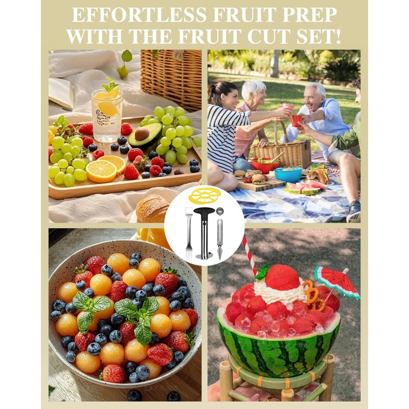 - Essential Kitchen Tool: Whether you're preparing healthy school snacks, office treats, or party fruit platters, this set simplifies fruit prep effortlessly. Efficient and time-saving - it transforms tedious fruit cutting into easy work, making it an essential helper for kitchen