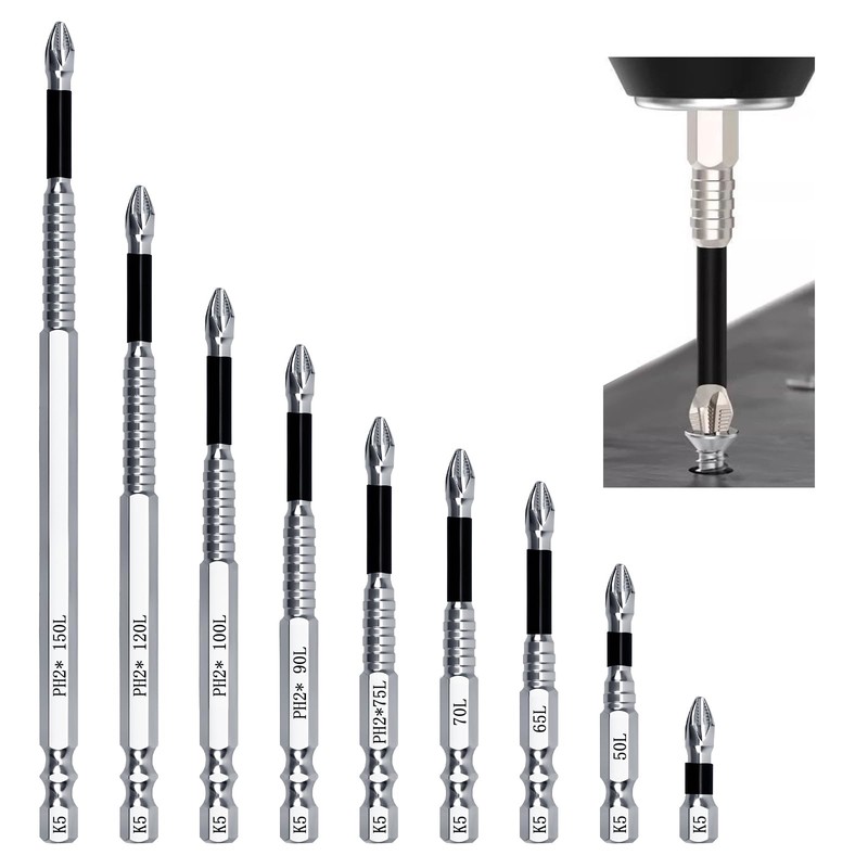 The anti-slip magnetic bit set offers sizes of 25, 50, 65,70,90,150mm