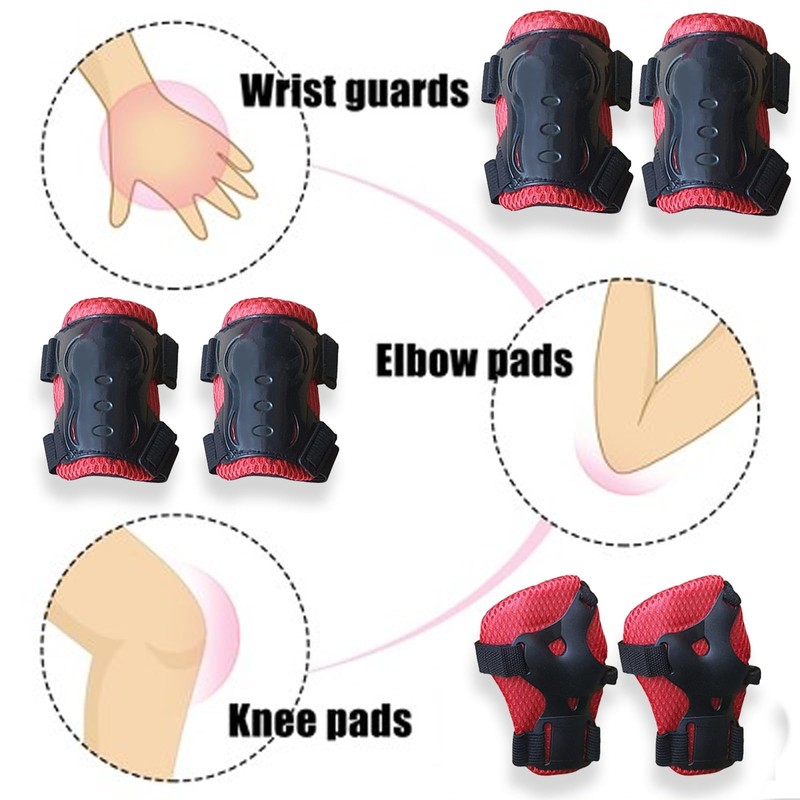 • 【Premium Material】The outermost layer of Elbow pads, knee pads and wrist pads set is high quality materials, kids knee and elbow pads can effectively resist impact. The middle layer is breathable mesh and thick sponge, which can absorb impact and very breathable.