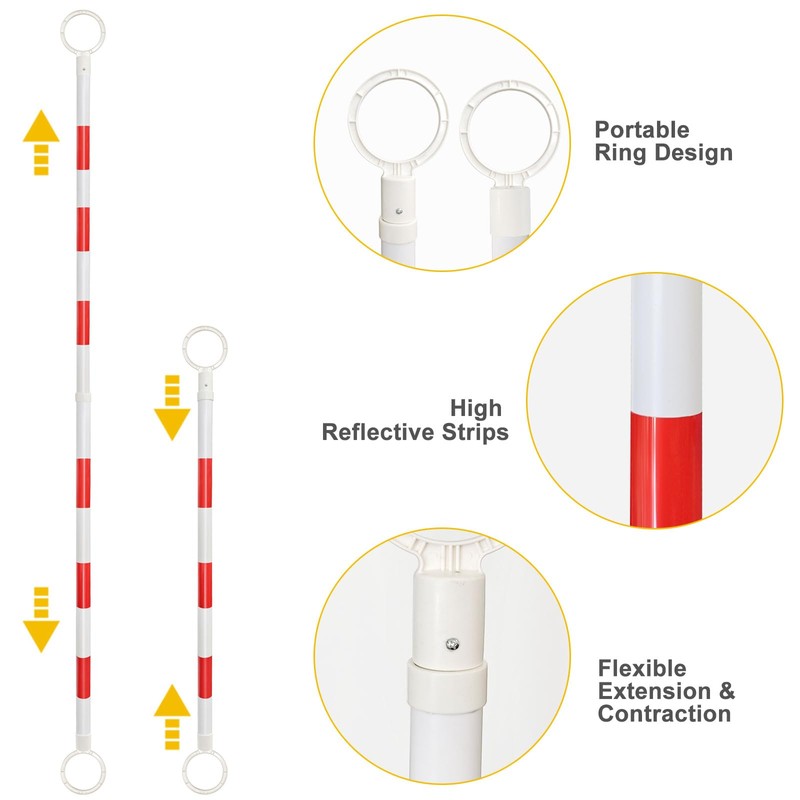 • Adjustable Length: 6 pack traffic cone bar are retractable from 4ft to 7ft,for easy to adjust the distance between two safety cones
