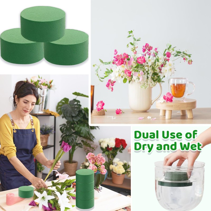 6 Pcs Round Floral Foam Blocks,3 in Green Wet Dry Florist Foam Circles,Artificial Fresh Flower Plant Arrangements Foam for Wedding Party Home DIY Decor Crafts
