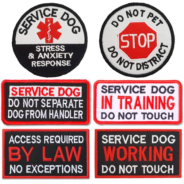 6 PCS Service Dog Patches with Removable Tactical Hook Loop Harness Velcro Dog Patch Embroidered in Training Patch Do Not Pet Patch Working Dog Patch for Vest Harnesses Collars Leashes
