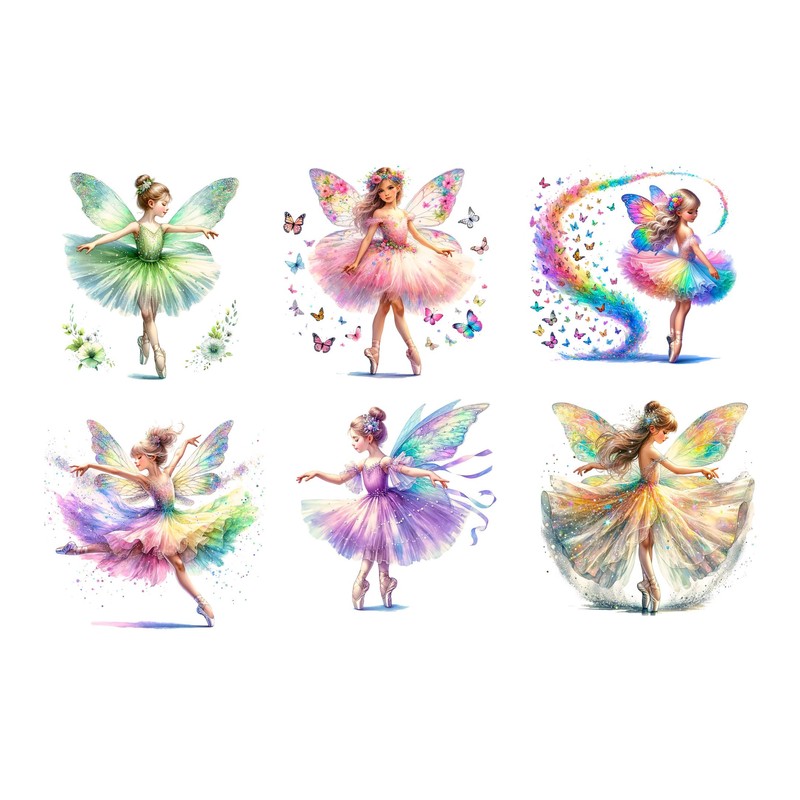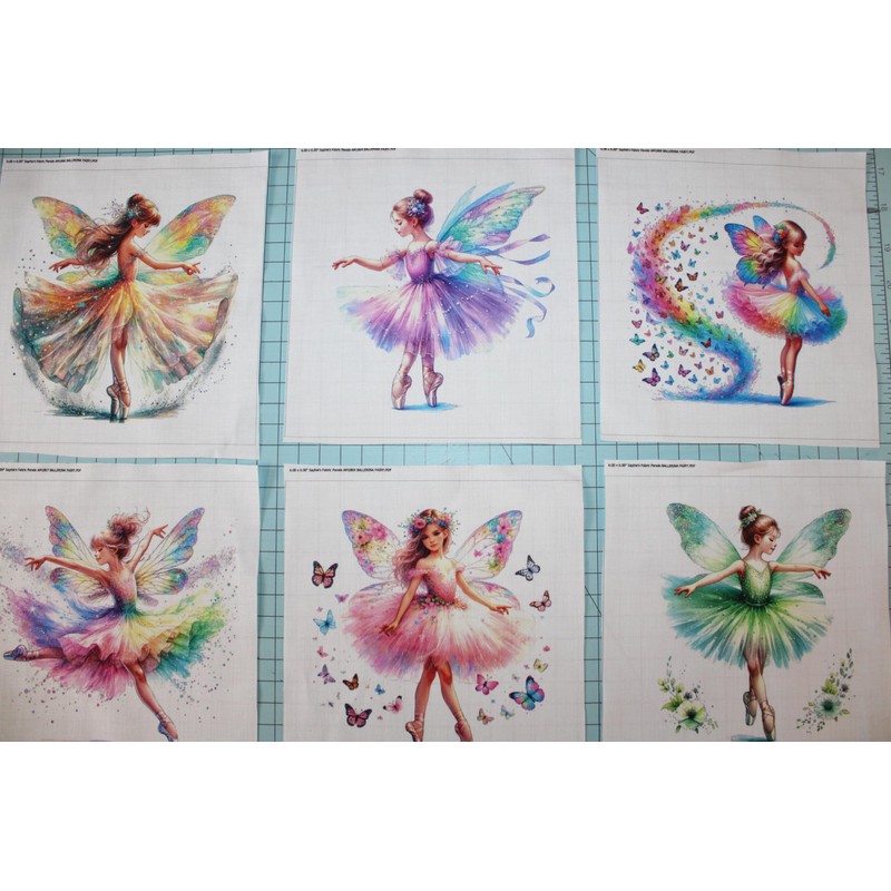 6 Piece 6"x6" Ballerina Fairies Floral 100% Cotton Panel Squares - Quilting Panel Blocks