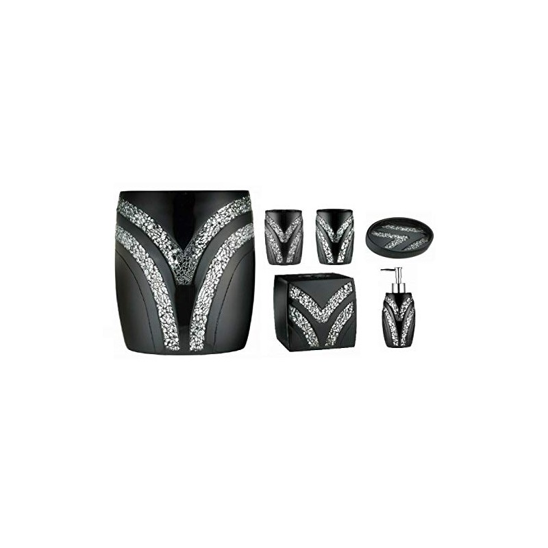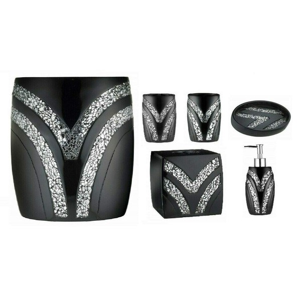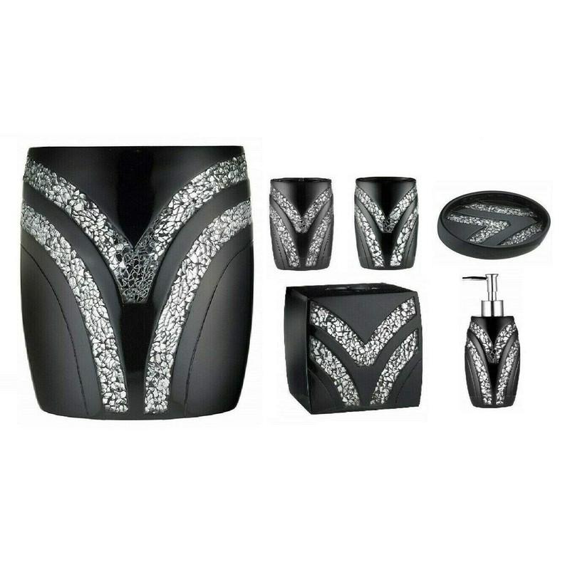 6 Piece Sinatra Resin Bath Accessory Set, Cracked Glass, Black