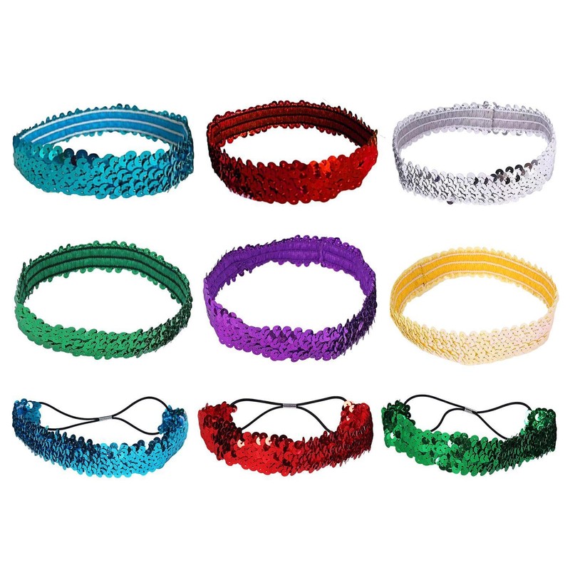 - Product content: you will receive 6 pieces of elastic sequin hair bands and 3 pieces of elastic sequin hair bands with elastic bands. The elastic hair band from Paillistin is about 20 cm tall and the colours include red, green, yellow, blue, purple and silver; the sequin headband of elastic band has a size of 20 cm and the colours include red, green and blue, suitable for a variety of hairstyles and styles.