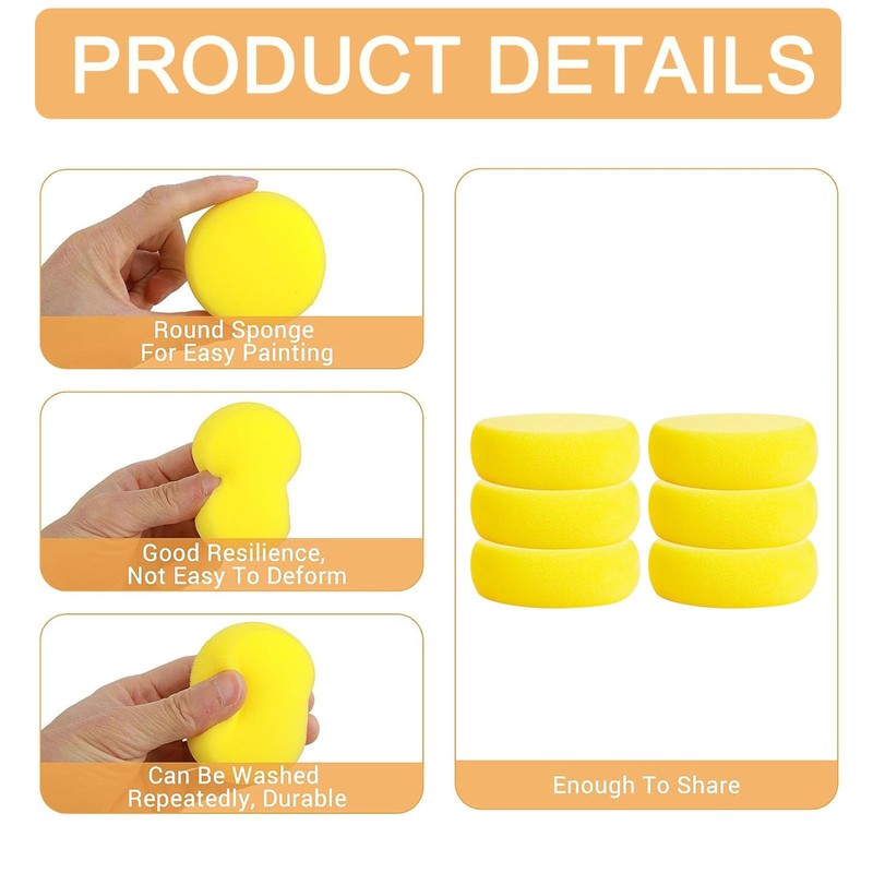 6 Pieces Painting Sponge, Synthetic Art Sponge, Round Sponge Set, 7.5 cm Painting Accessories Sponges, Soft Absorbent Painting Sponge Sponges, Dotting Brush, Yellow Sponge Brush for Crafts, Ceramic