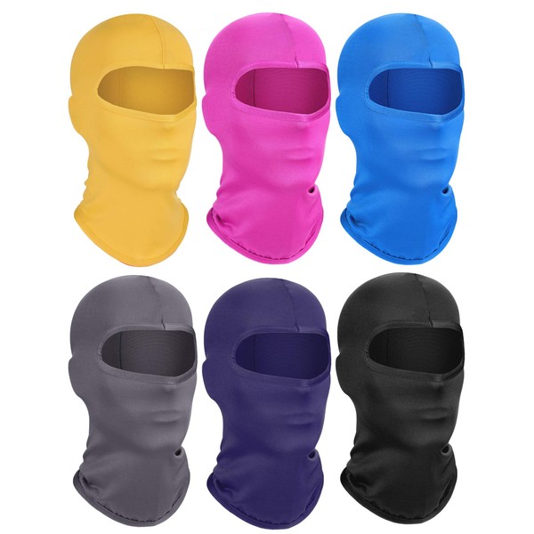 6 Pieces Ski Mask Kids Balaclava Winter Windproof Face Covering Breathable Neck Gaiter for Winter Outdoor Activities (Blue, Rose Red, Yellow, Gray, Navy Blue, Black, Large)