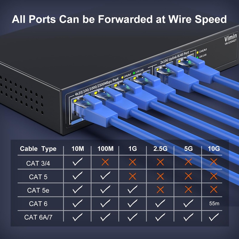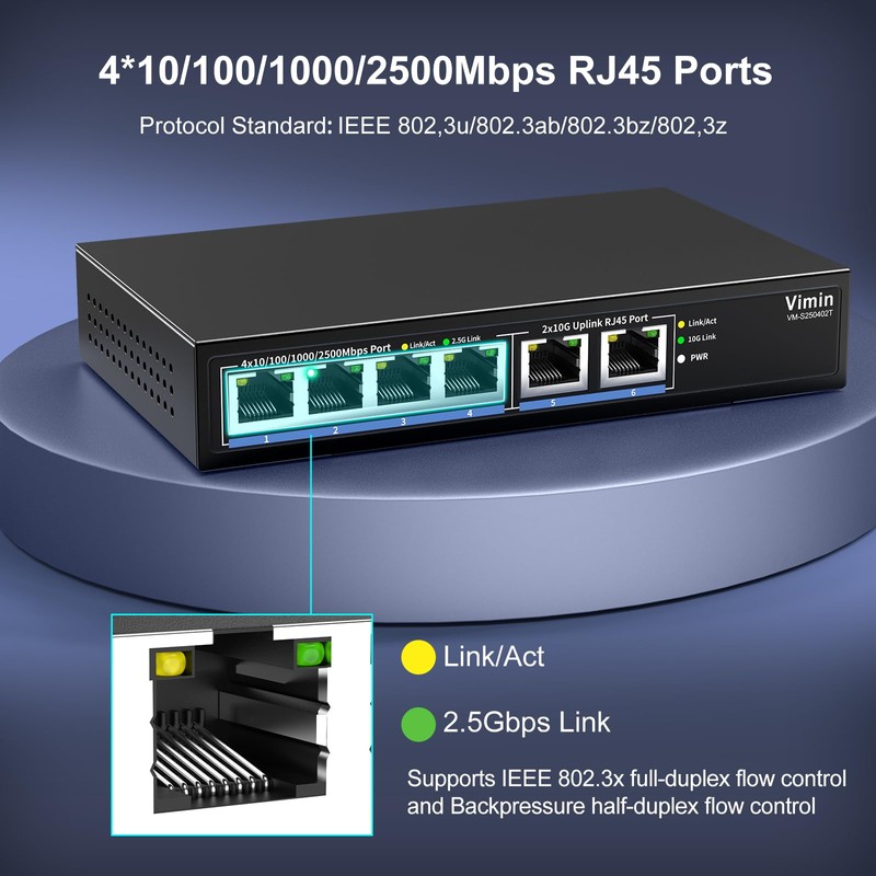 - ✓ Wire-Speed 10G Network Switch - Non-blocking 60Gbps switching capacity ensures zero packet loss for 4K streaming/gaming, supporting full IEEE 802.3bz 2.5G/5G standards and backward compatibility with CAT5e/CAT6 cables.