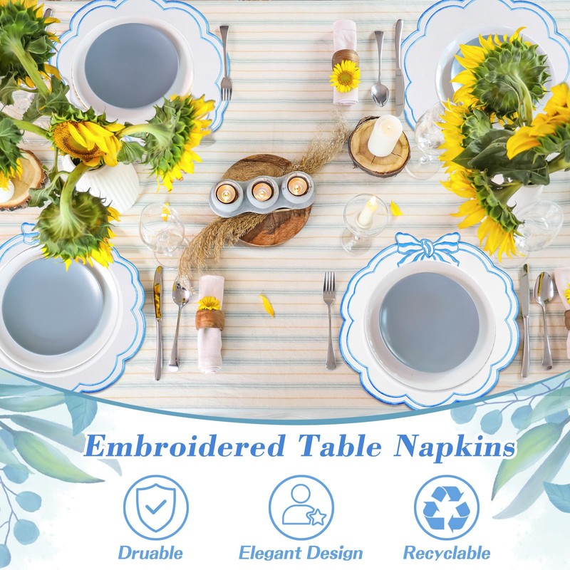 - Durable: these table dinner napkin are made from polyester cotton fabric that is durable for both everyday use and special holiday meals; The material ensures your scalloped napkins stay in good condition, offering extended reuse and an excellent return on your investment