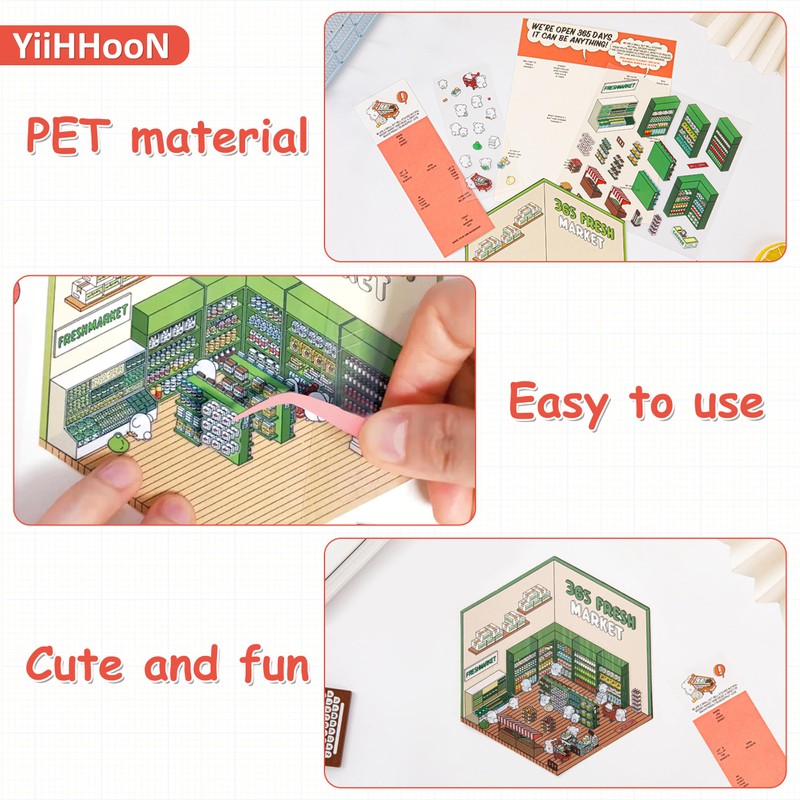 - Comprehensive Set: This set includes 6 themed DIY 3D house stickers featuring different fun scenes such as a study room, dessert shop, burger shop, bakery, market, and convenience store; provide enough variety for creative projects